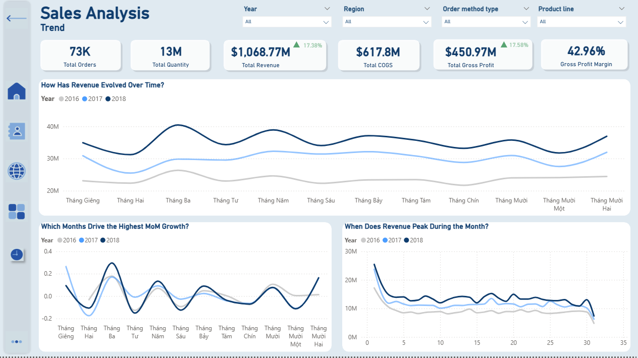 Phân tích dữ liệu bán hàng 2016–2018 cho thấy sự tăng trưởng mạnh mẽ của doanh nghiệp, nhưng cũng bộc lộ những điểm yếu chiến lược cần được khắc phục để tối ưu hóa lợi nhuận.